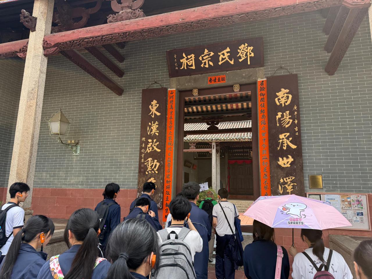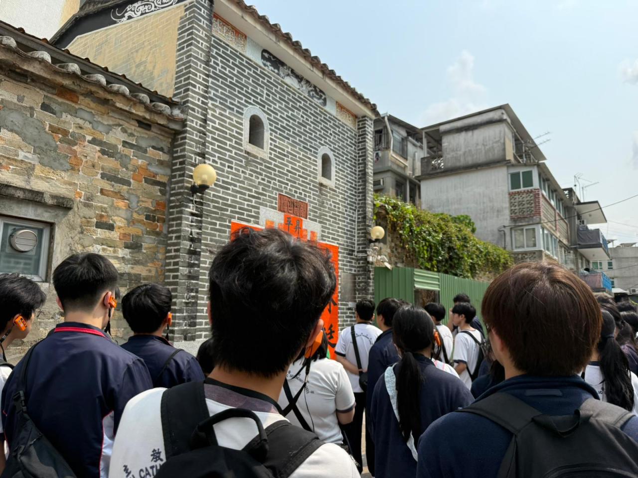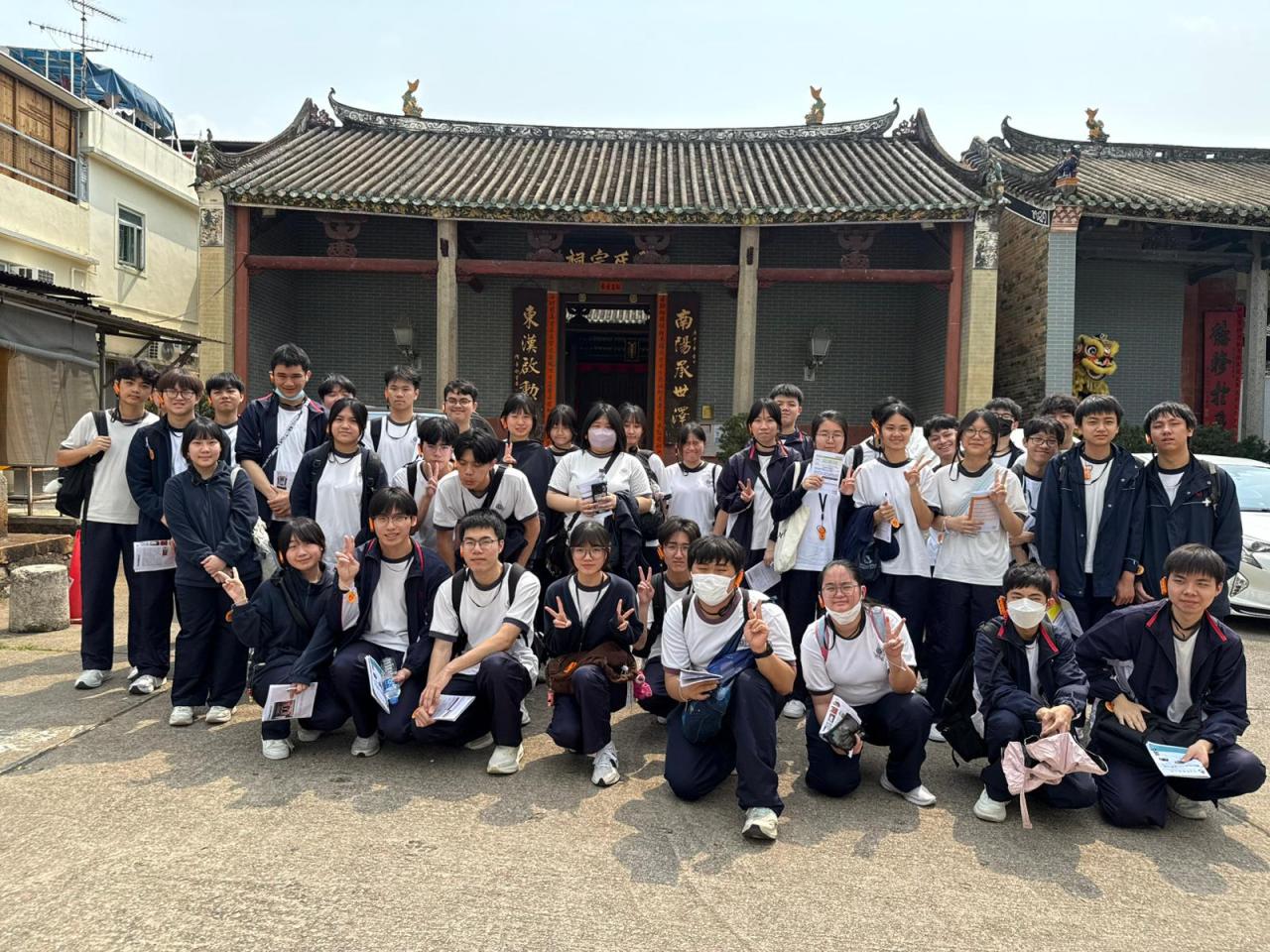中文科早前為中五級學生舉辦文化考察活動, 當天參觀的地點為元朗屏山文物徑及大埔林村。學生在參觀期間,除了認識圍村建築特色、孝悌文化外,亦能一嚐圍村盤菜的滋味。