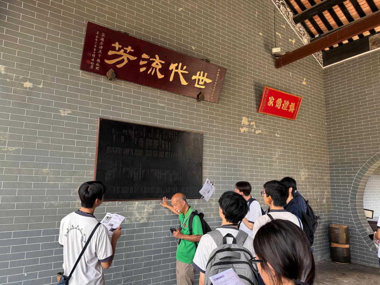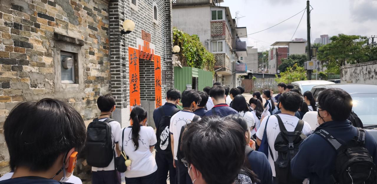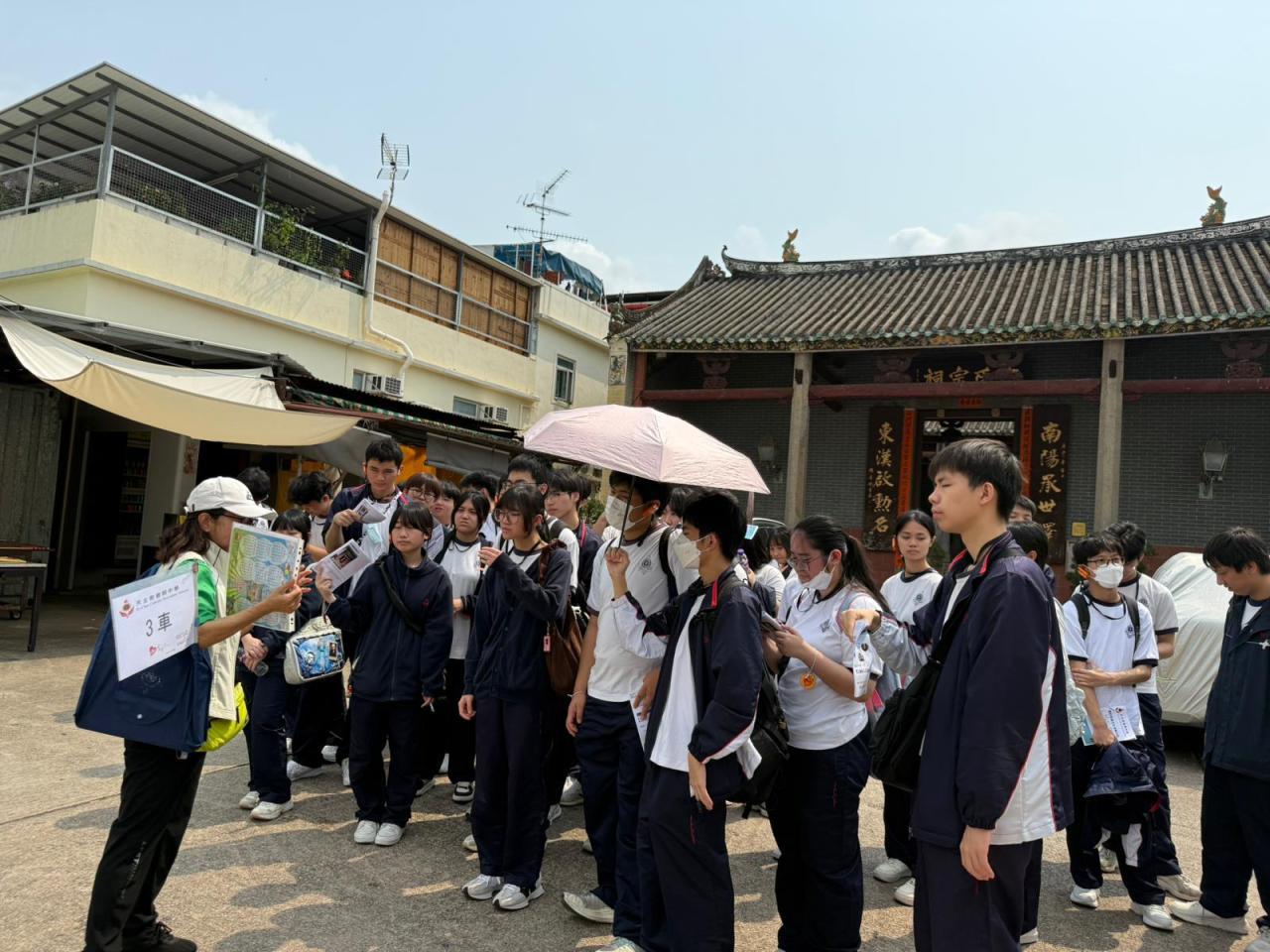 中文科早前為中五級學生舉辦文化考察活動, 當天參觀的地點為元朗屏山文物徑及大埔林村。學生在參觀期間,除了認識圍村建築特色、孝悌文化外,亦能一嚐圍村盤菜的滋味。