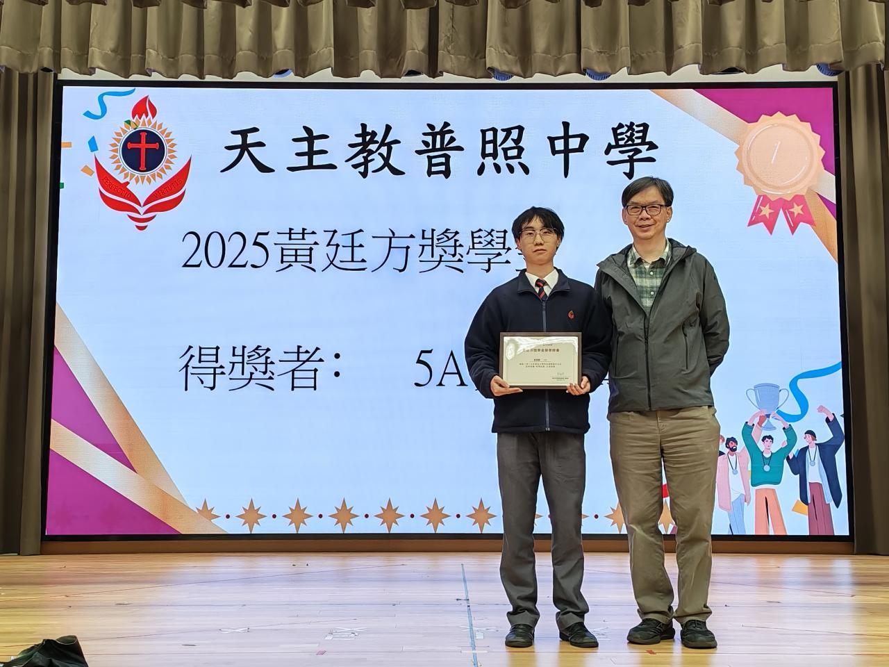 班黃源麒同學品學兼優,獲得黃廷方獎學金榮