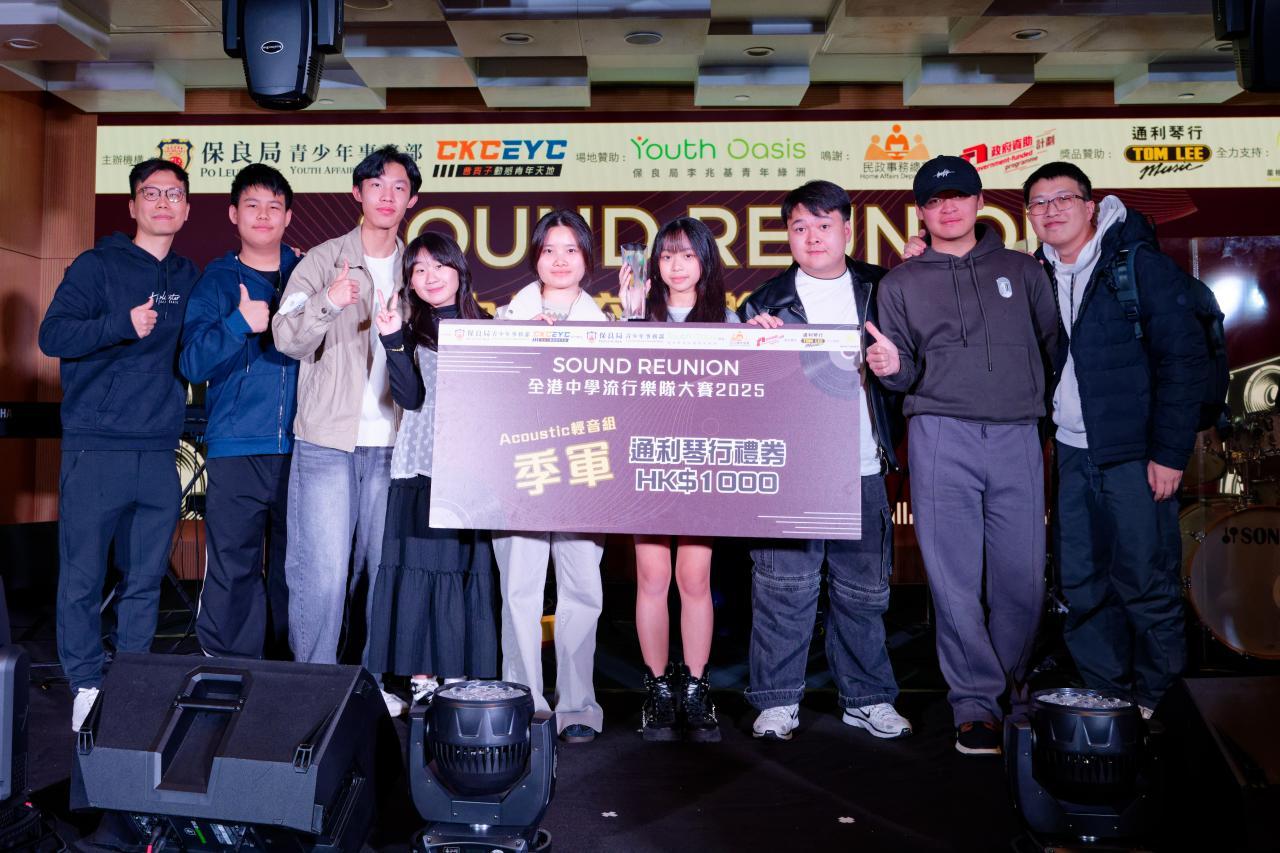 恭喜本校校園樂隊在**「Sound Reunion 全港中學流行樂隊大賽2025」**中奪得 Acoustic 輕音組季軍!