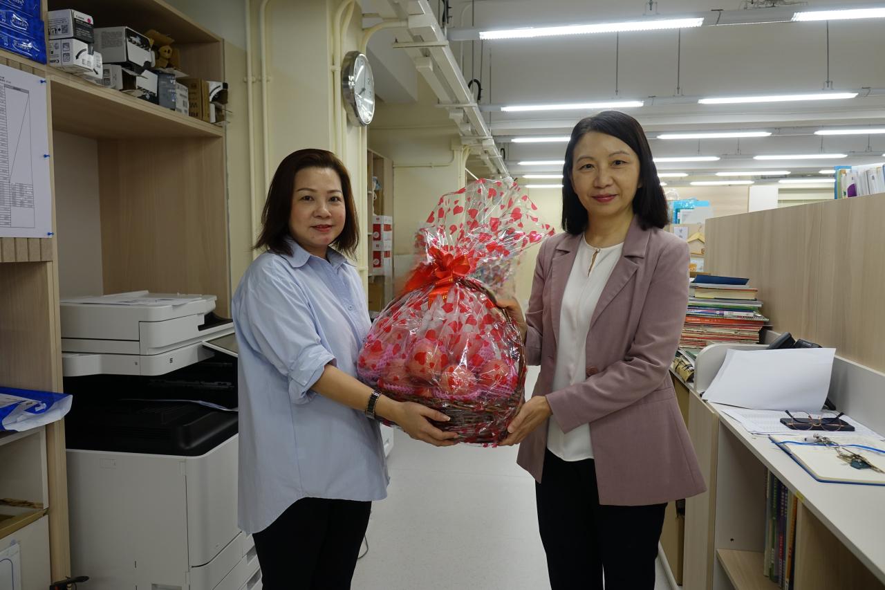 每年9月10日的「教師節」是一個感謝老師教導的節日,是社會對「尊師重道」精神的肯定和支持。為答謝過去一年老師為教育付出的努力,家教會主席陳彩京女士代表各家長向本校全體教職員致送果籃,由校長代領,祝願老師們來年身心健康,天天「精神爽利」迎接各項任重道遠的教學工作。
