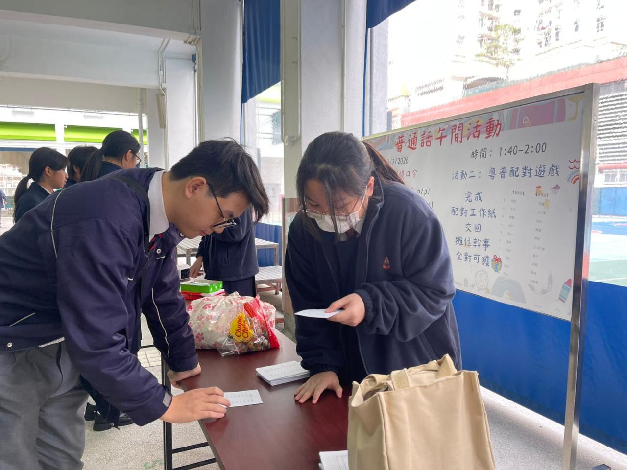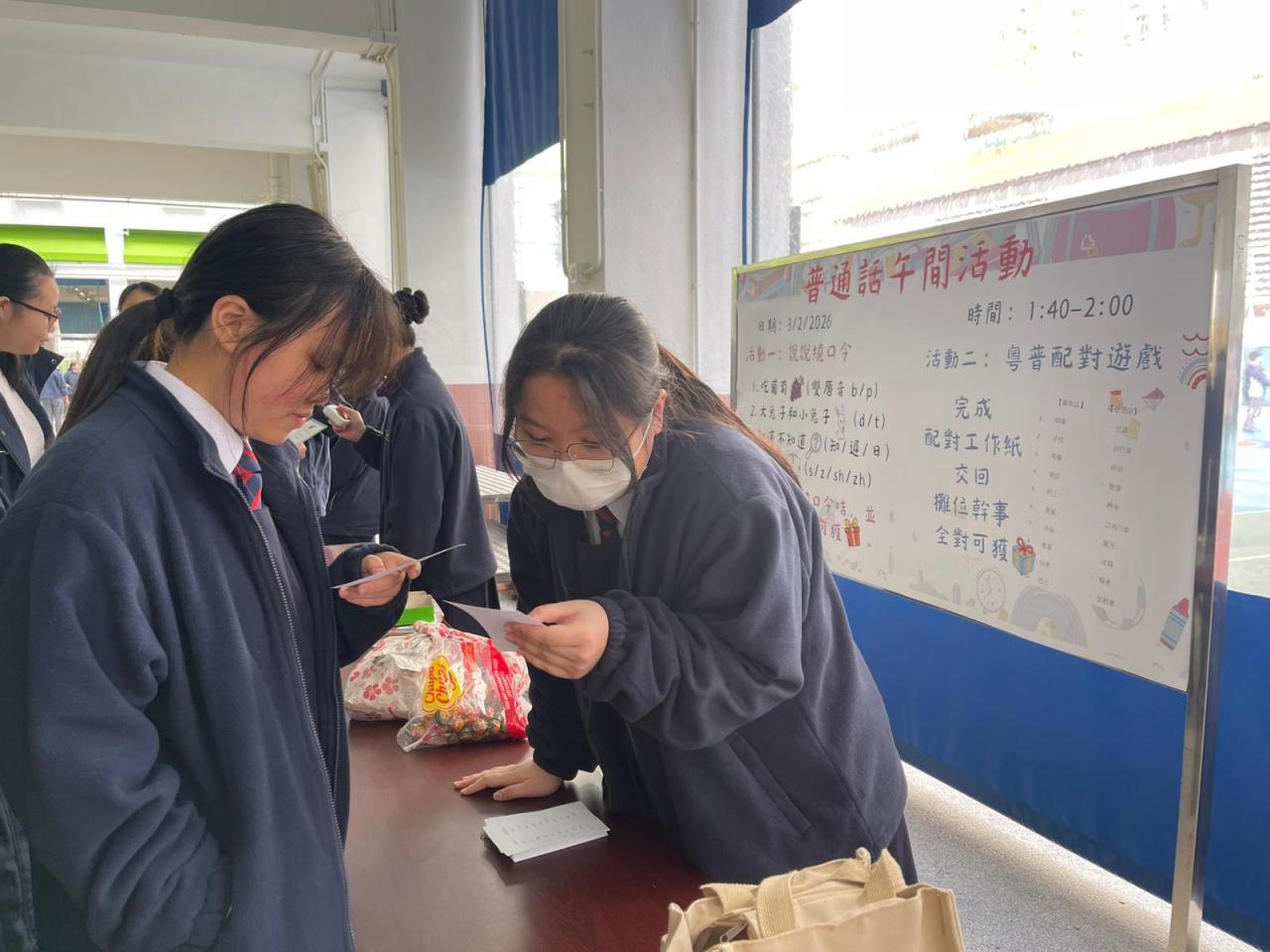 日舉辦普通話午間活動:說說繞口令、粤普配對遊戲,同學於午膳時間踴躍參與。