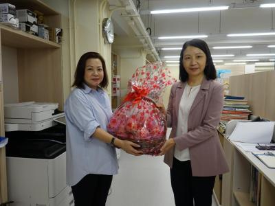 每年9月10日的「教師節」是一個感謝老師教導的節日,是社會對「尊師重道」精神的肯定和支持。為答謝過去一年老師為教育付出的努力,家教會主席陳彩京女士代表各家長向本校全體教職員致送果籃,由校長代領,祝願老師們來年身心健康,天天「精神爽利」迎接各項任重道遠的教學工作。